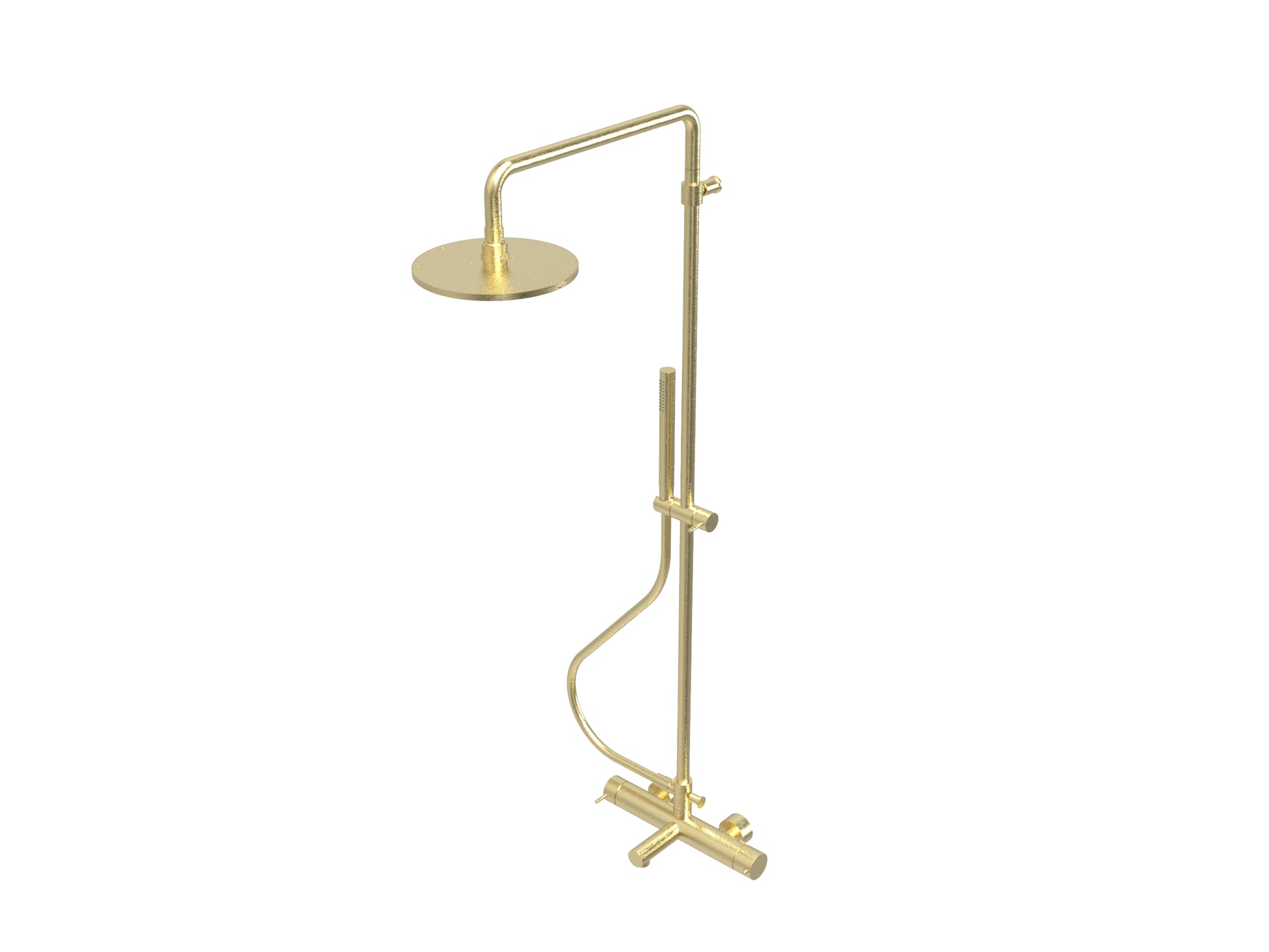 T1.31TN.R.25.LE Torneira misturadora termostática de banheira 3 saídas, com coluna, bica, chuveiro de 250mm e chuveiro de mão redondo - nova versão latão escovado Waterevolution Flow designed by Studio WE.